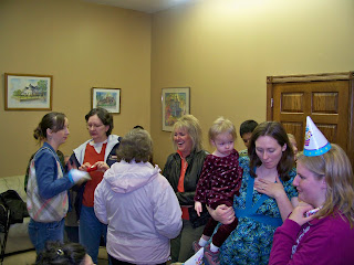 And the final clue led the kids to the Blue Bison where almost 40 people had gathered to await the arrival of our Birthday Girl. Monica knew something was going on but she was so surprised to see all the people there and had such a fun time (I hope!) celebrating her day with lots of friends from church as well as Cornerstone!